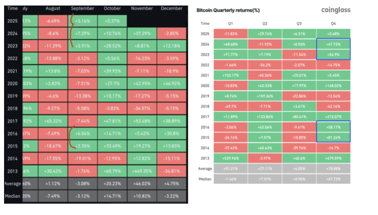 Bitcoin’s green September close historically precedes Q4 rallies, averaging 78% gains.