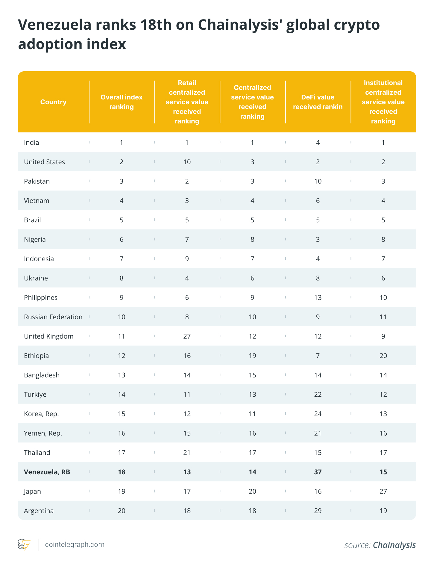 Adoption data adds to the picture. Venezuela sits among the leaders in grassroots crypto use, with stablecoins taking a growing share of everyday transfers.