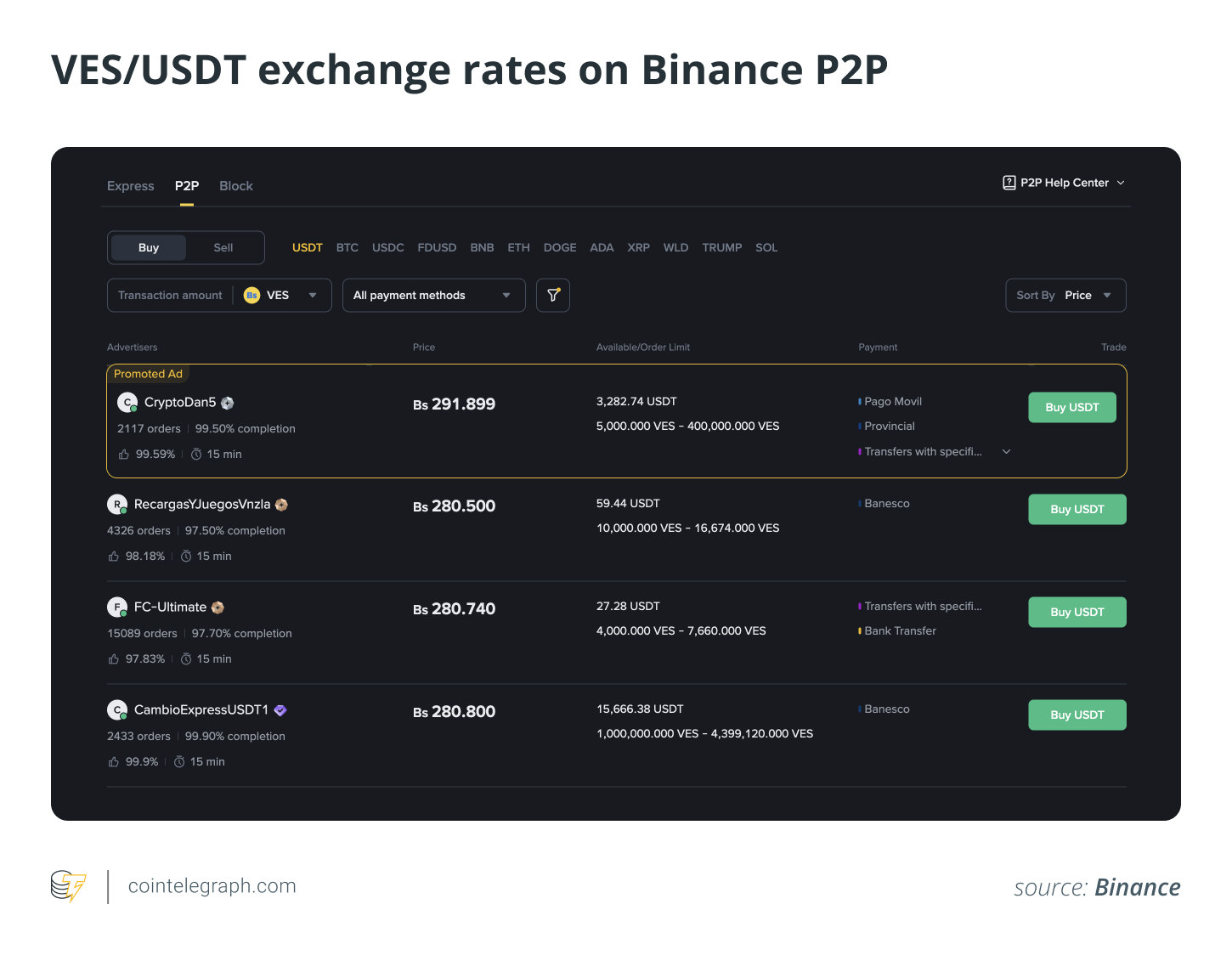 With inflation at 229%, daily prices in Venezuela are set in USDT “Binance dollars,” usually at live P2P rates.