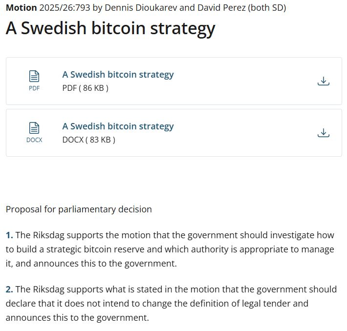 Swedish Lawmakers Push for Strategic Bitcoin Reserve